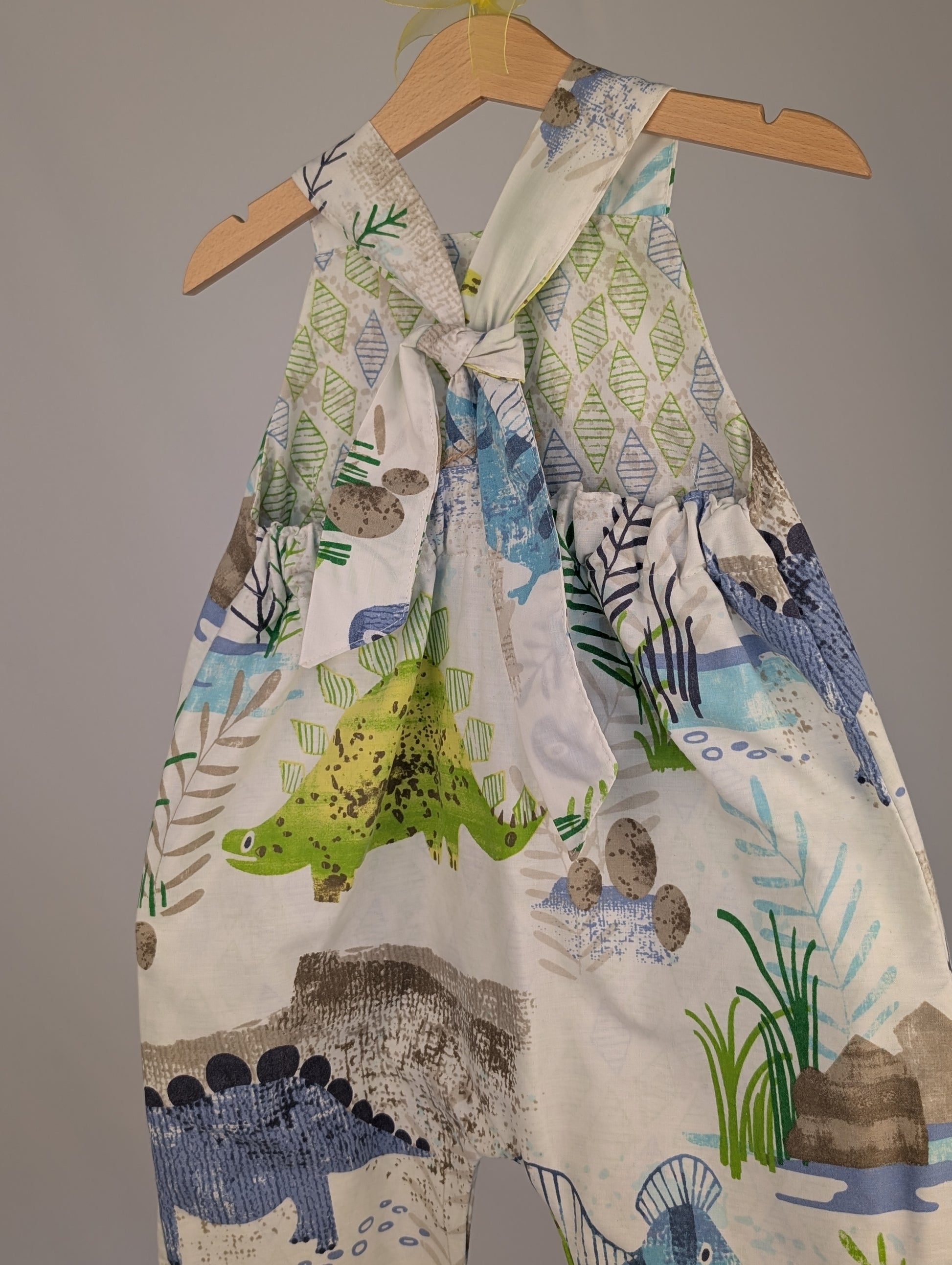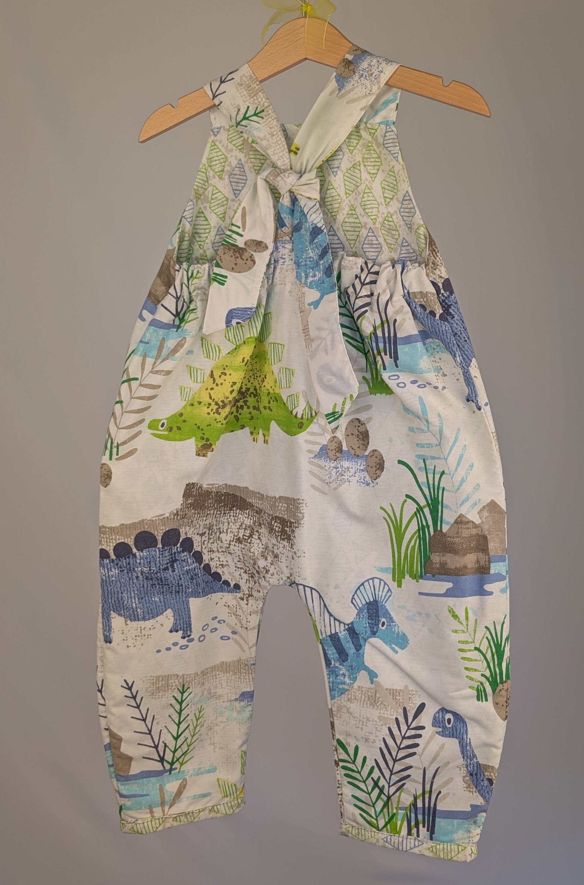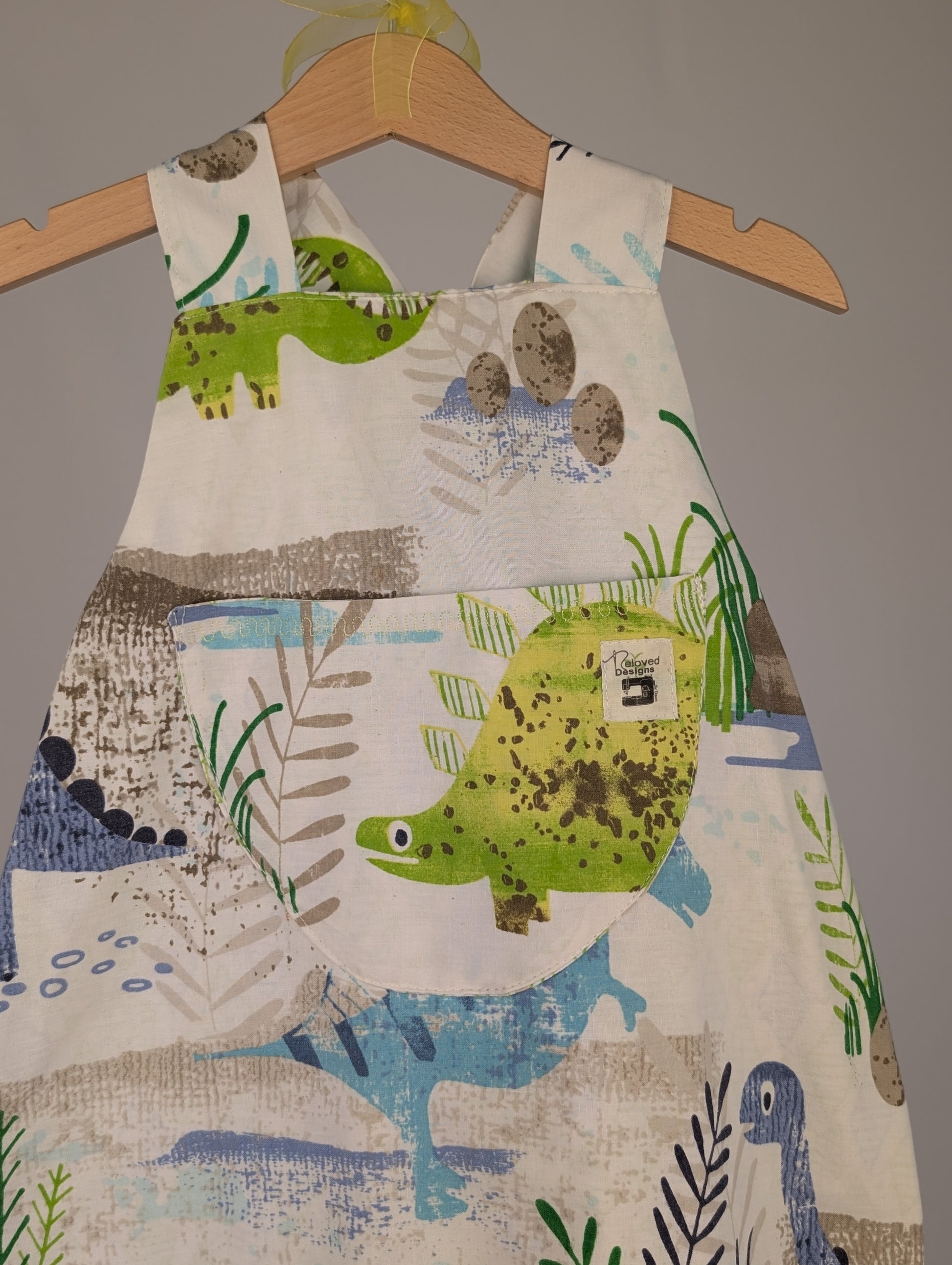 Dinosaur Dungarees, romper,(2-3y) sustainable children's gift.