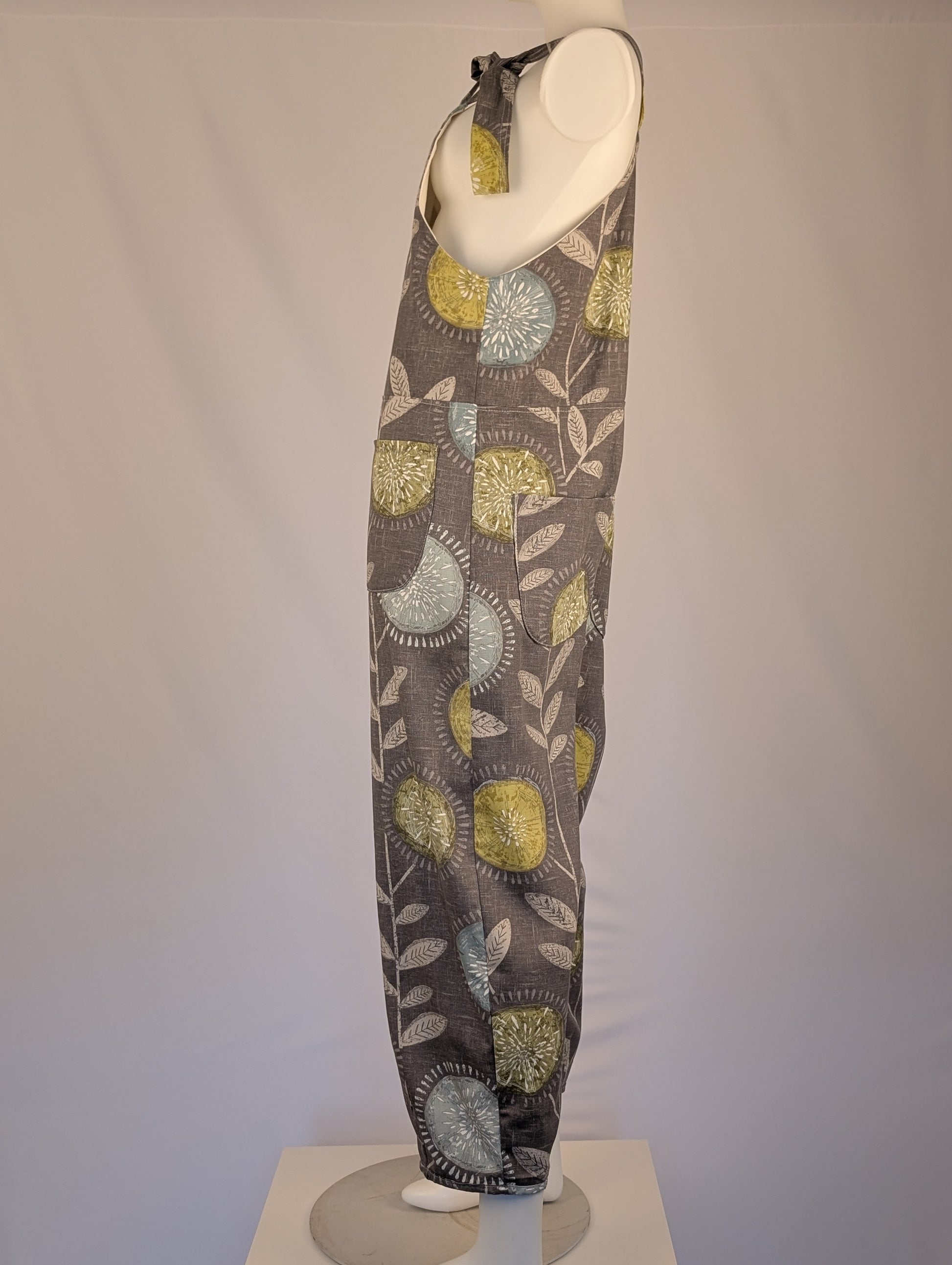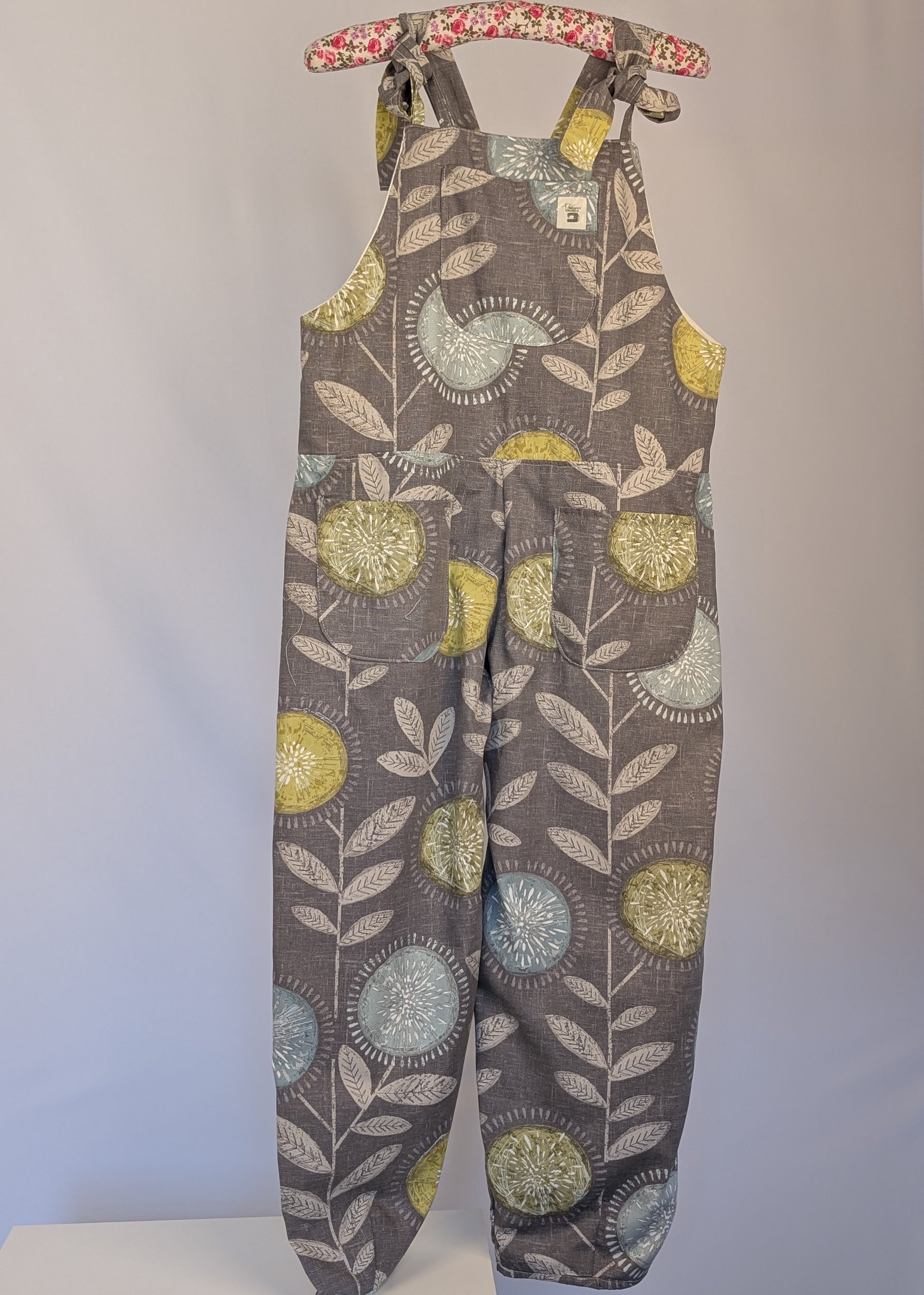 Eco clothing, upcycled reworked textiles dungarees Handmade in my home studio using reworked