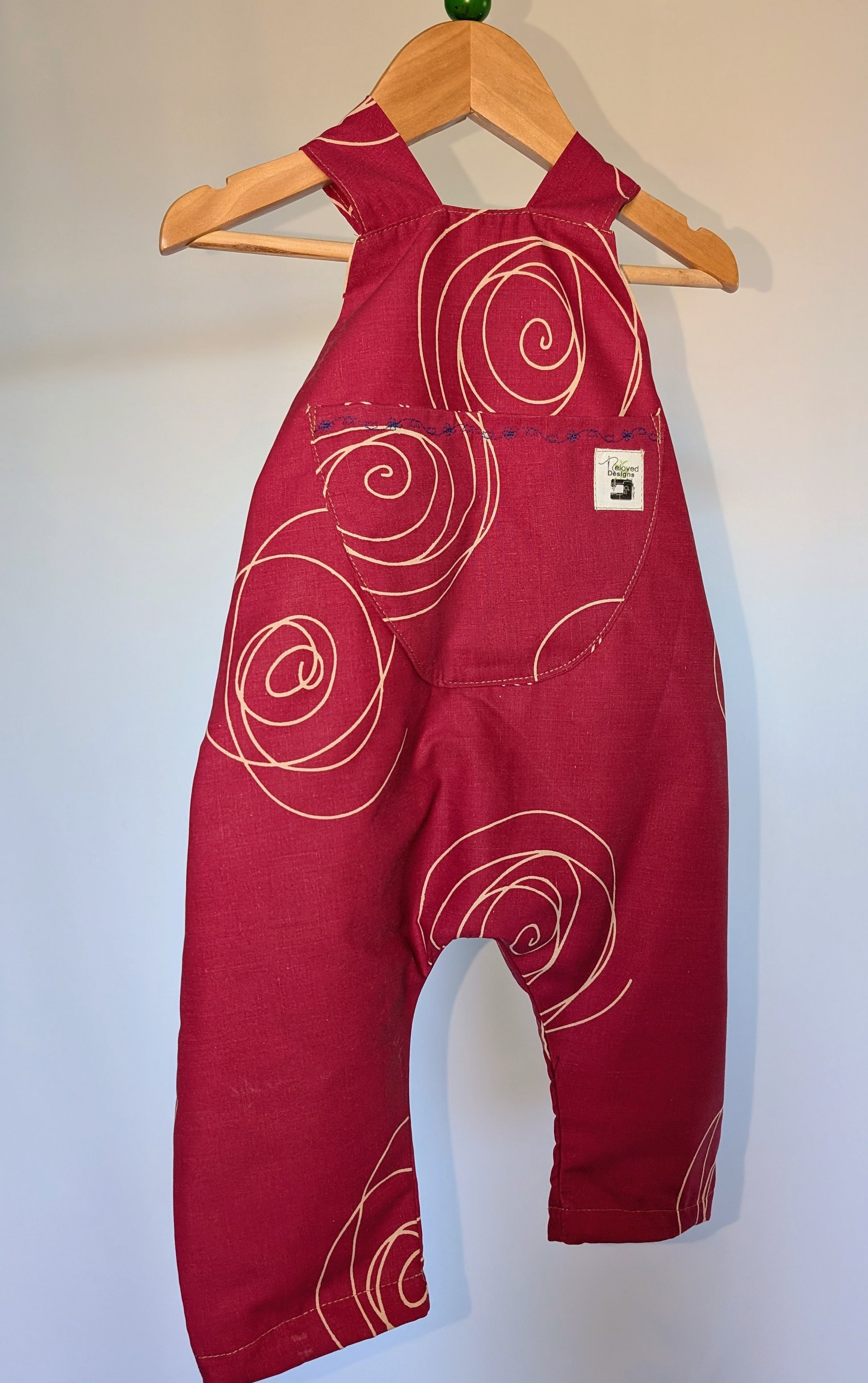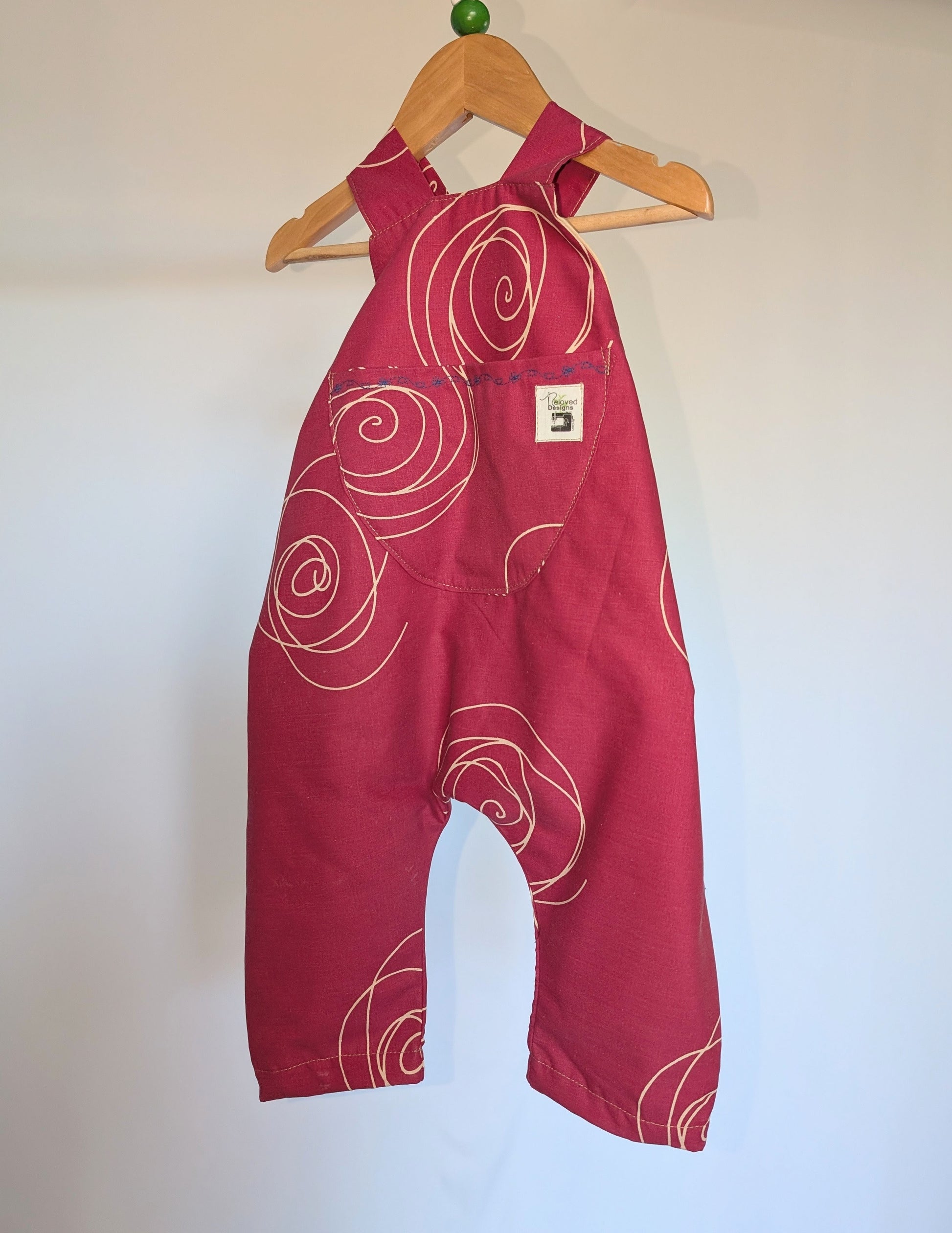 Patterned Pink Baby Dungarees Romper: Upcycled Sustainable Baby Clothing (9-12m)