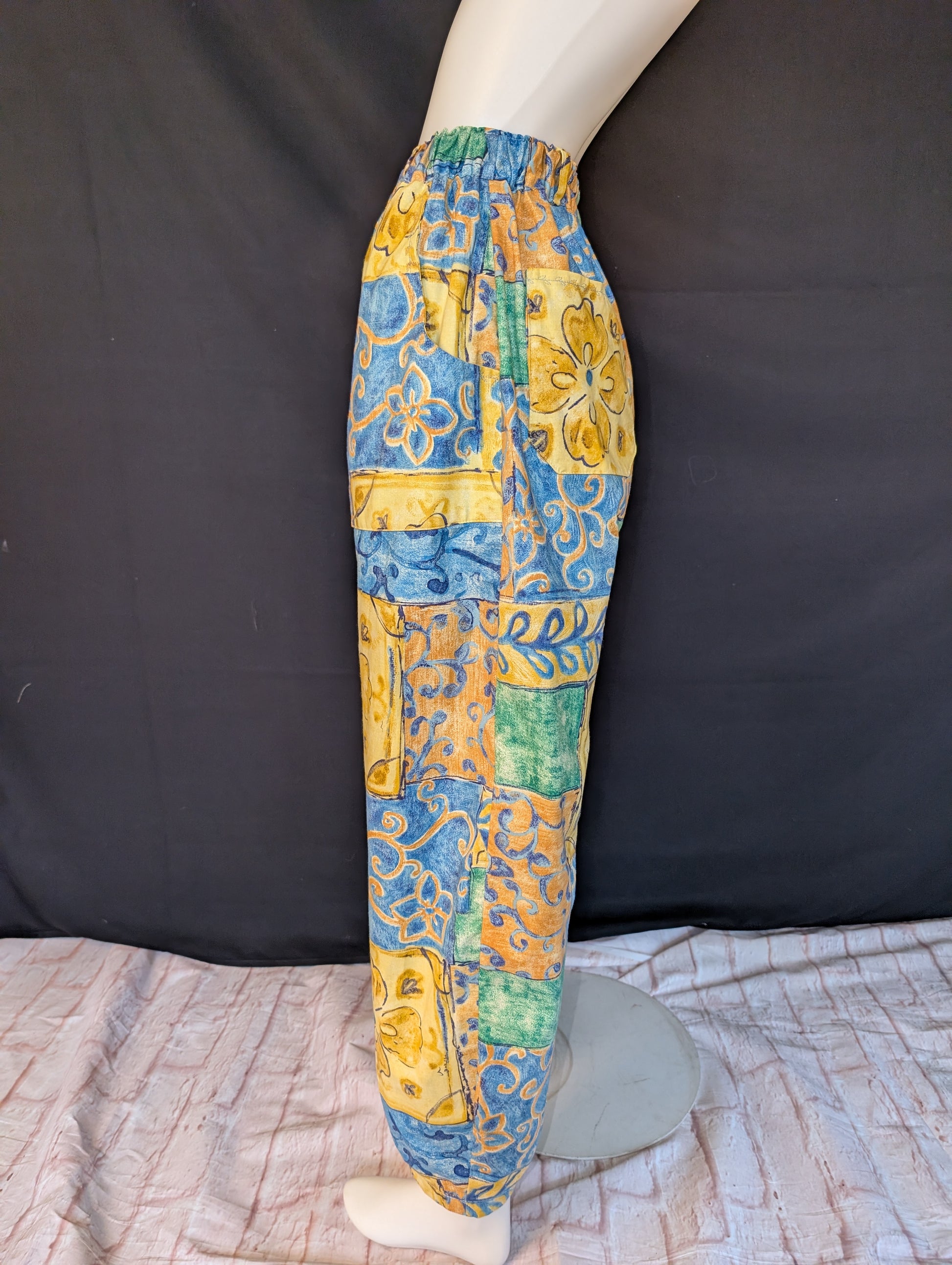 Reworked barrel Leg Trousers: Size 14 90s print abstract