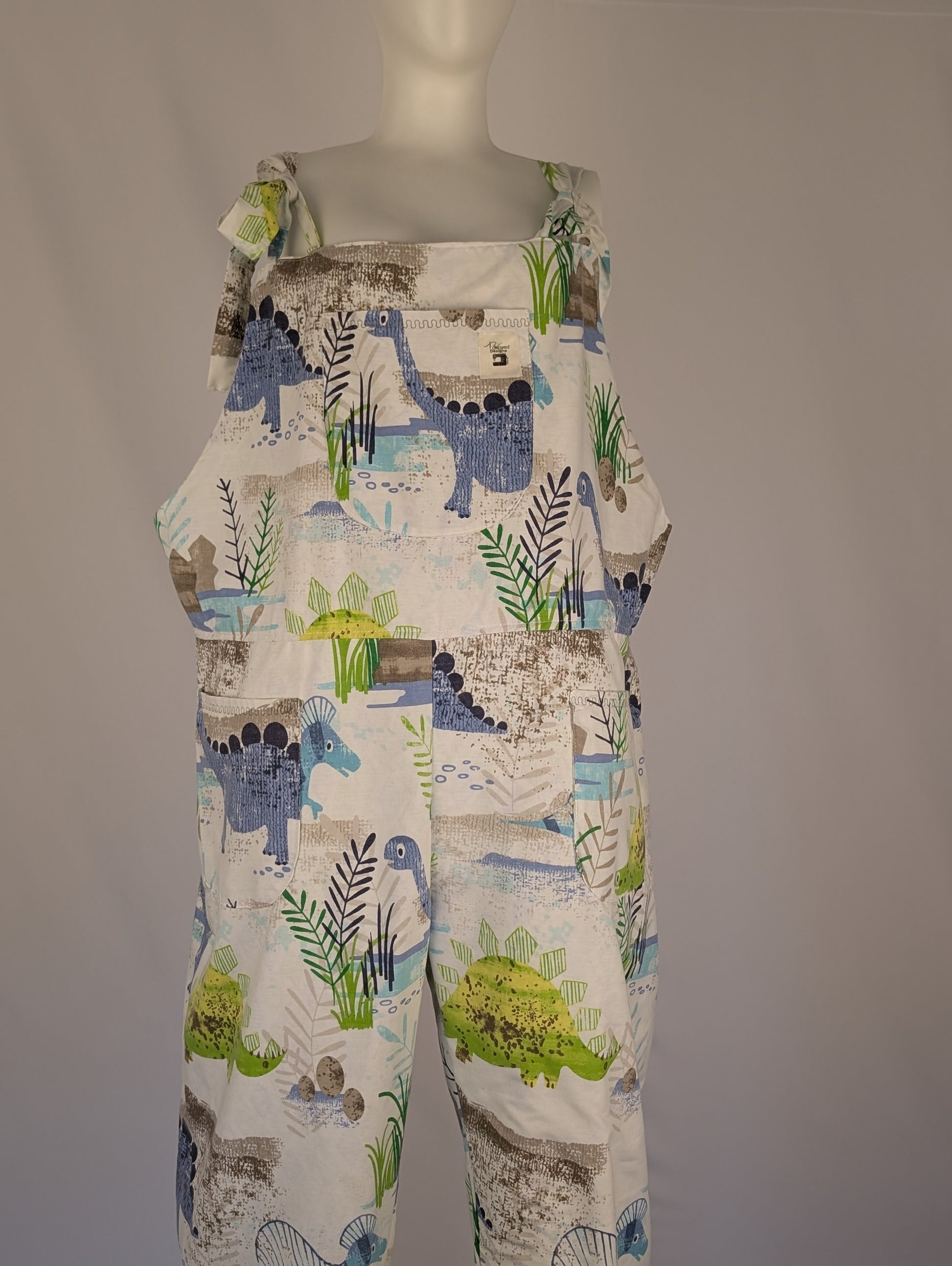 Upcycled Dinosaur Dungarees: Size 16-18/XL Baggy Fit Overalls