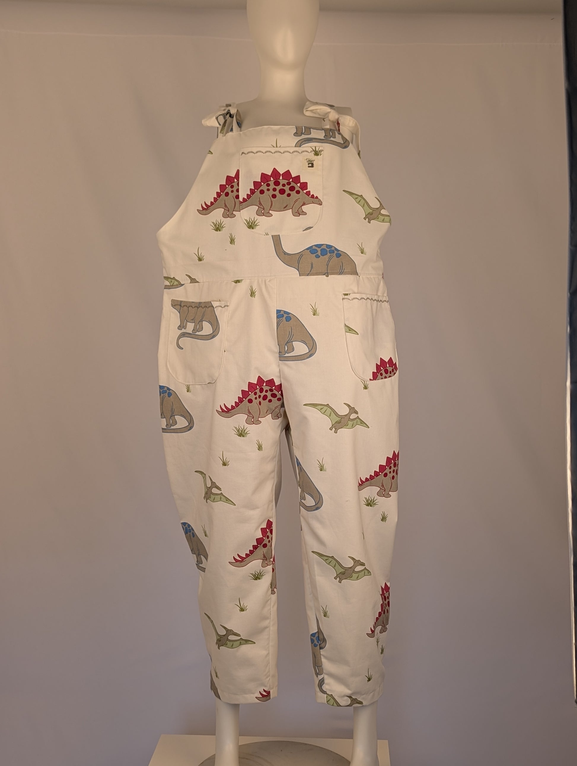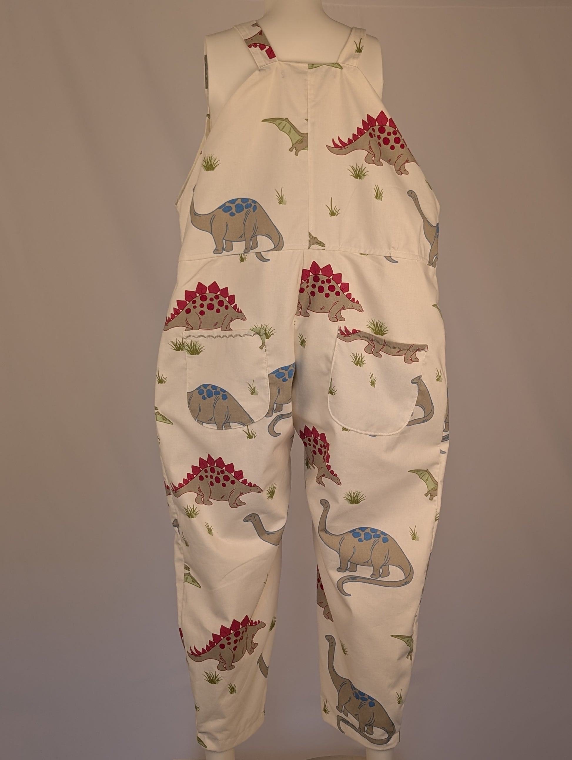Upcycled Dinosaur Dungarees: Size 16-18/XL Baggy Fit Overalls