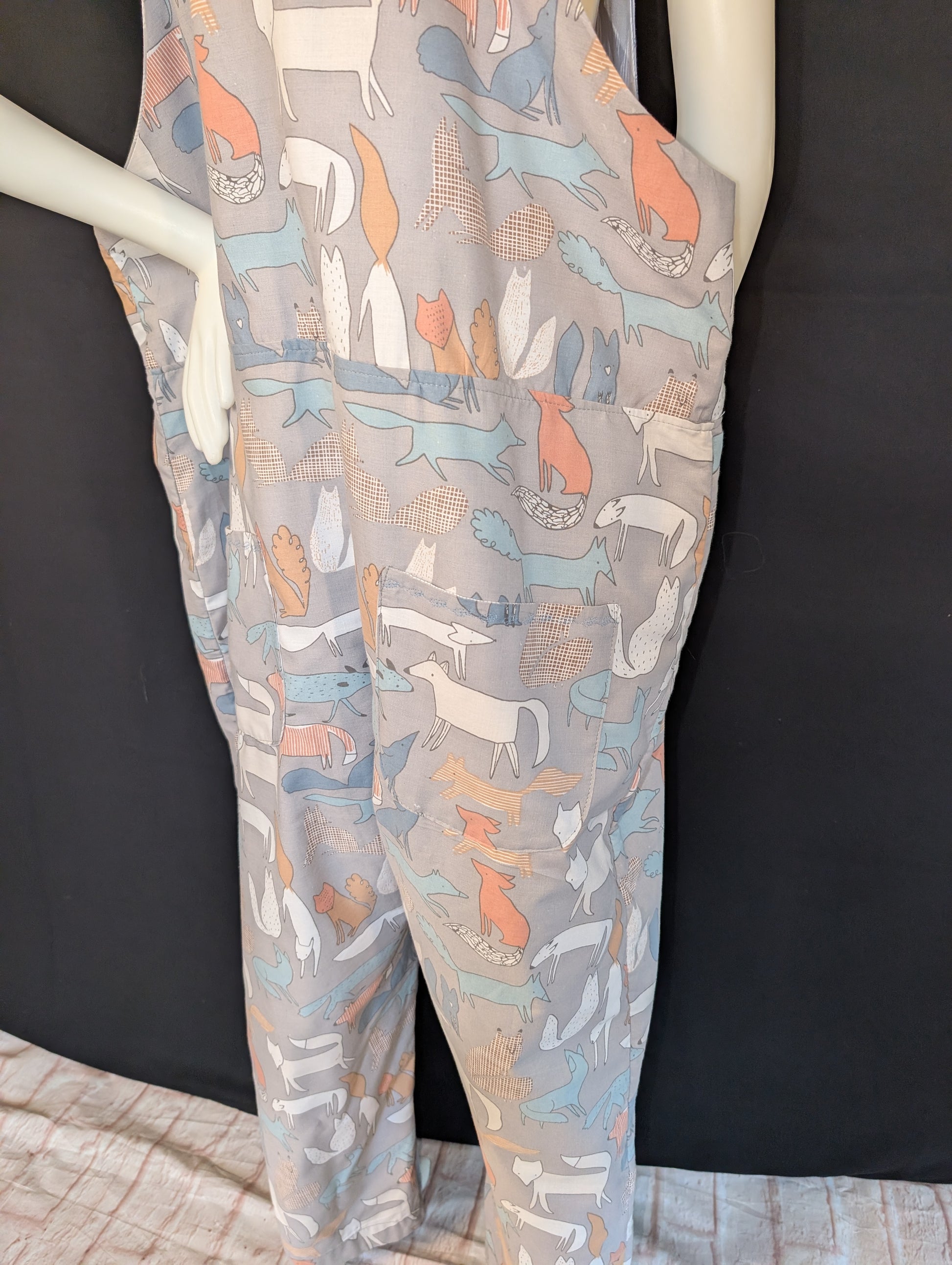 Upcycled Tie-Top Dungarees: foxes pattern, Plus Size 22