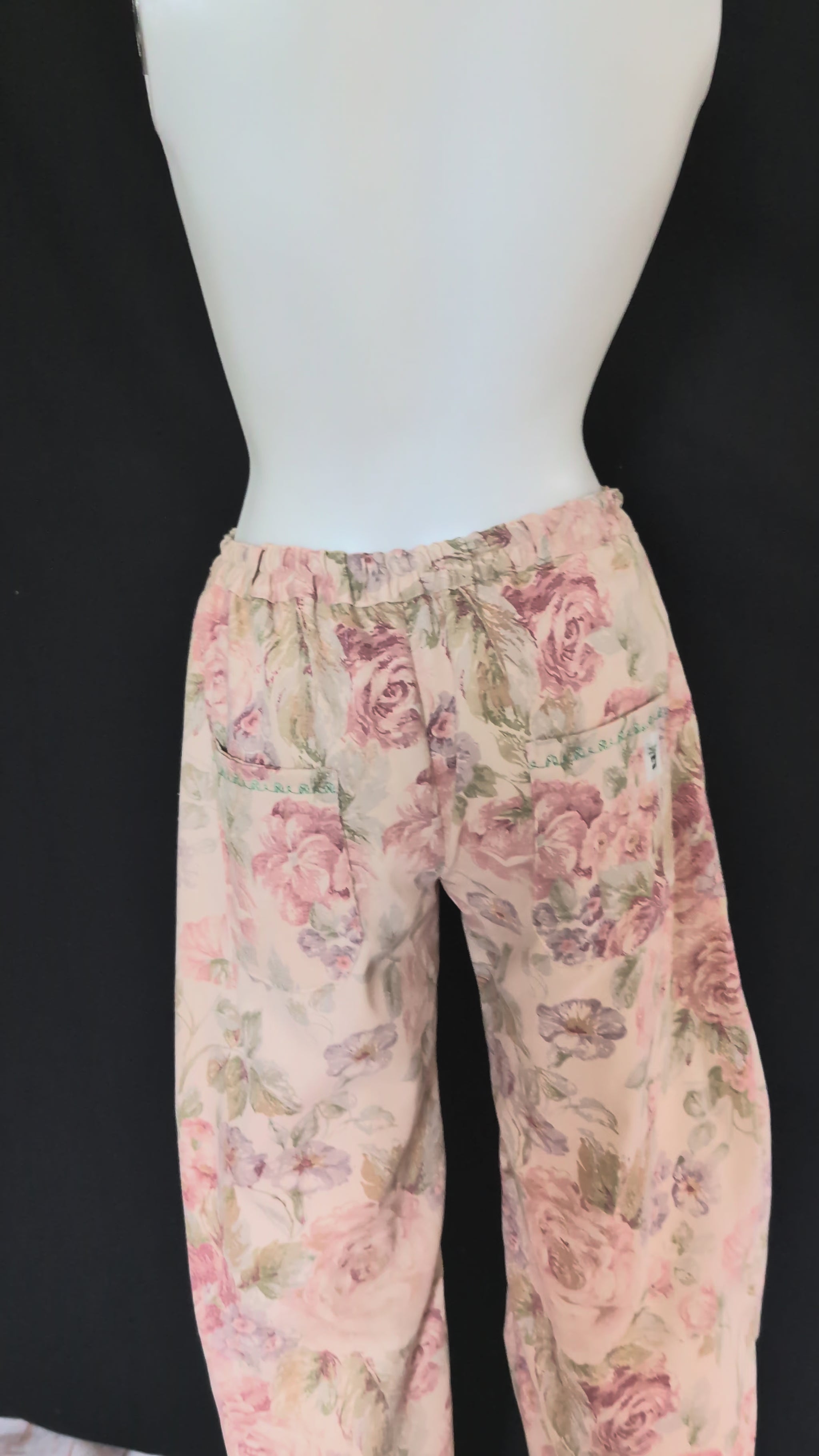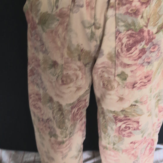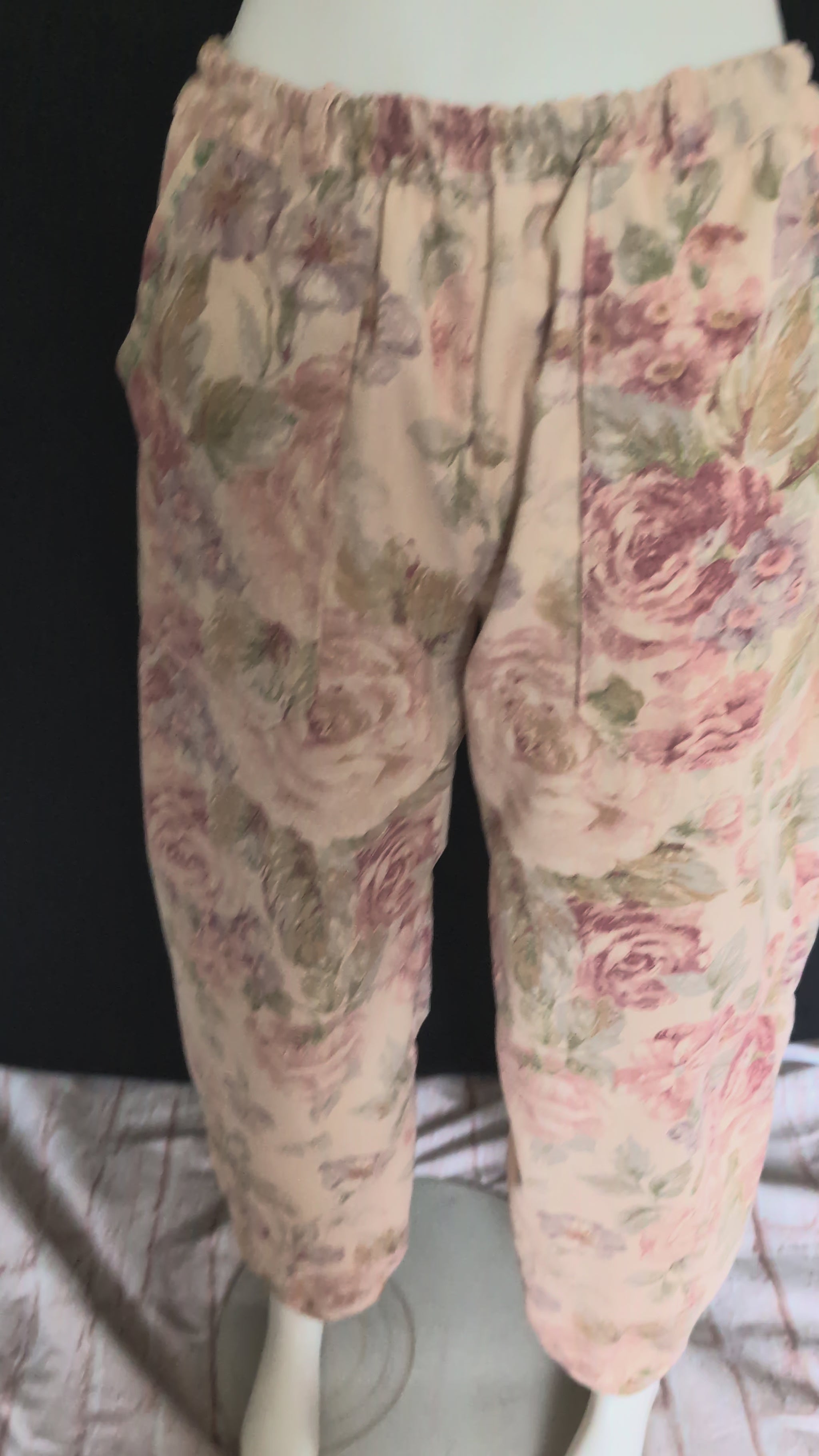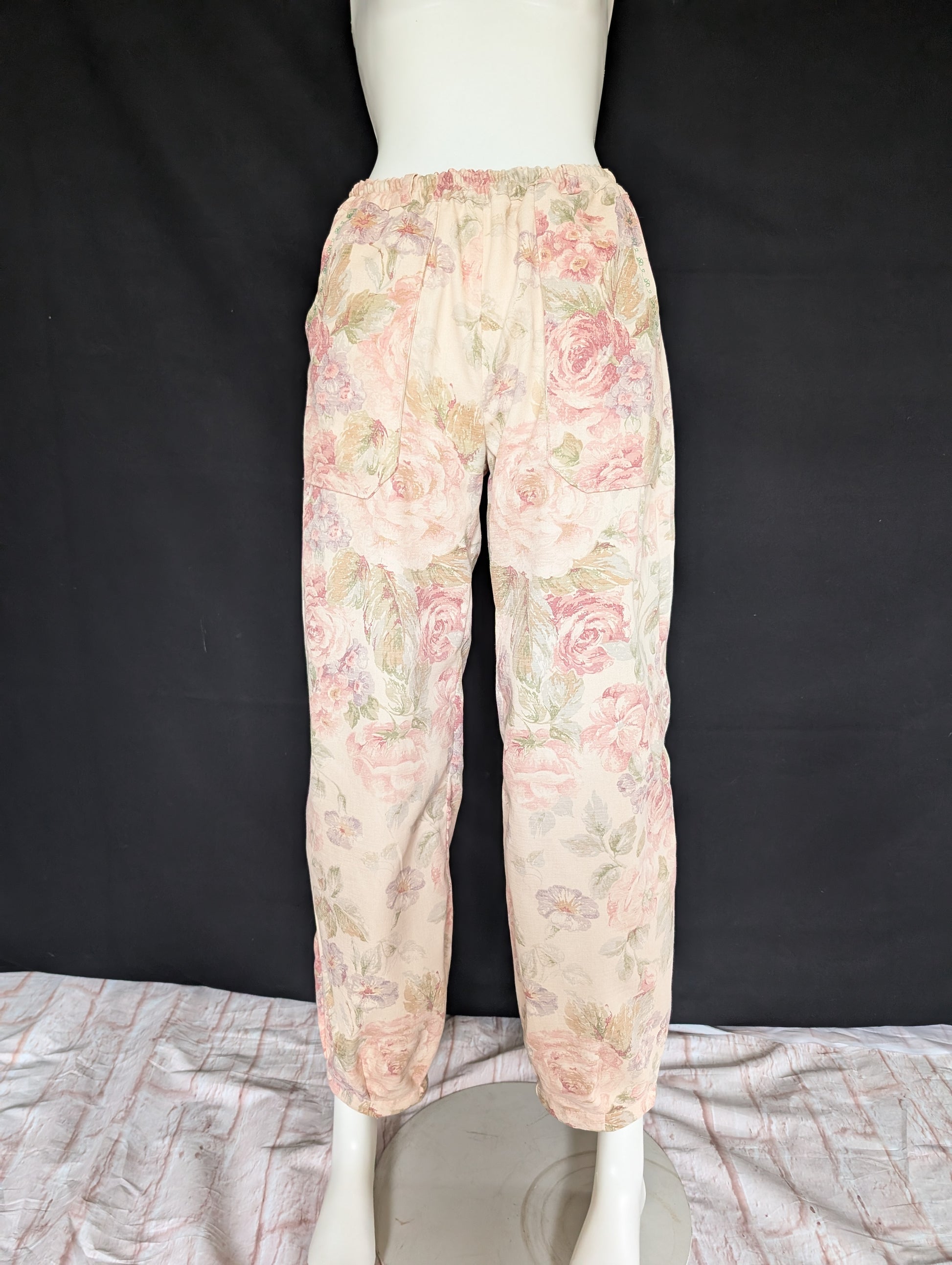 Vintage Vibe: Upcycled - Roses Pattern Trousers, Size 12 - Eco-Friendly Fashion
