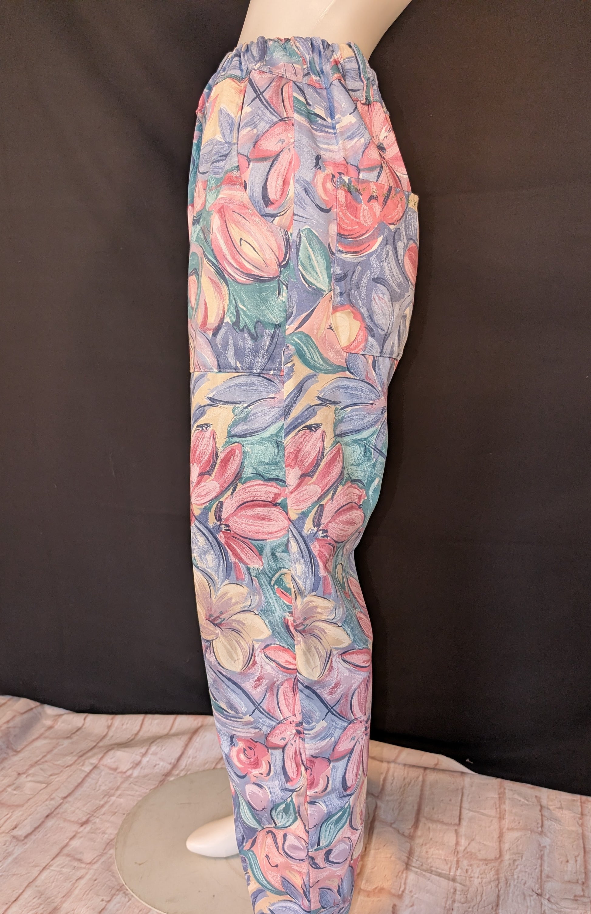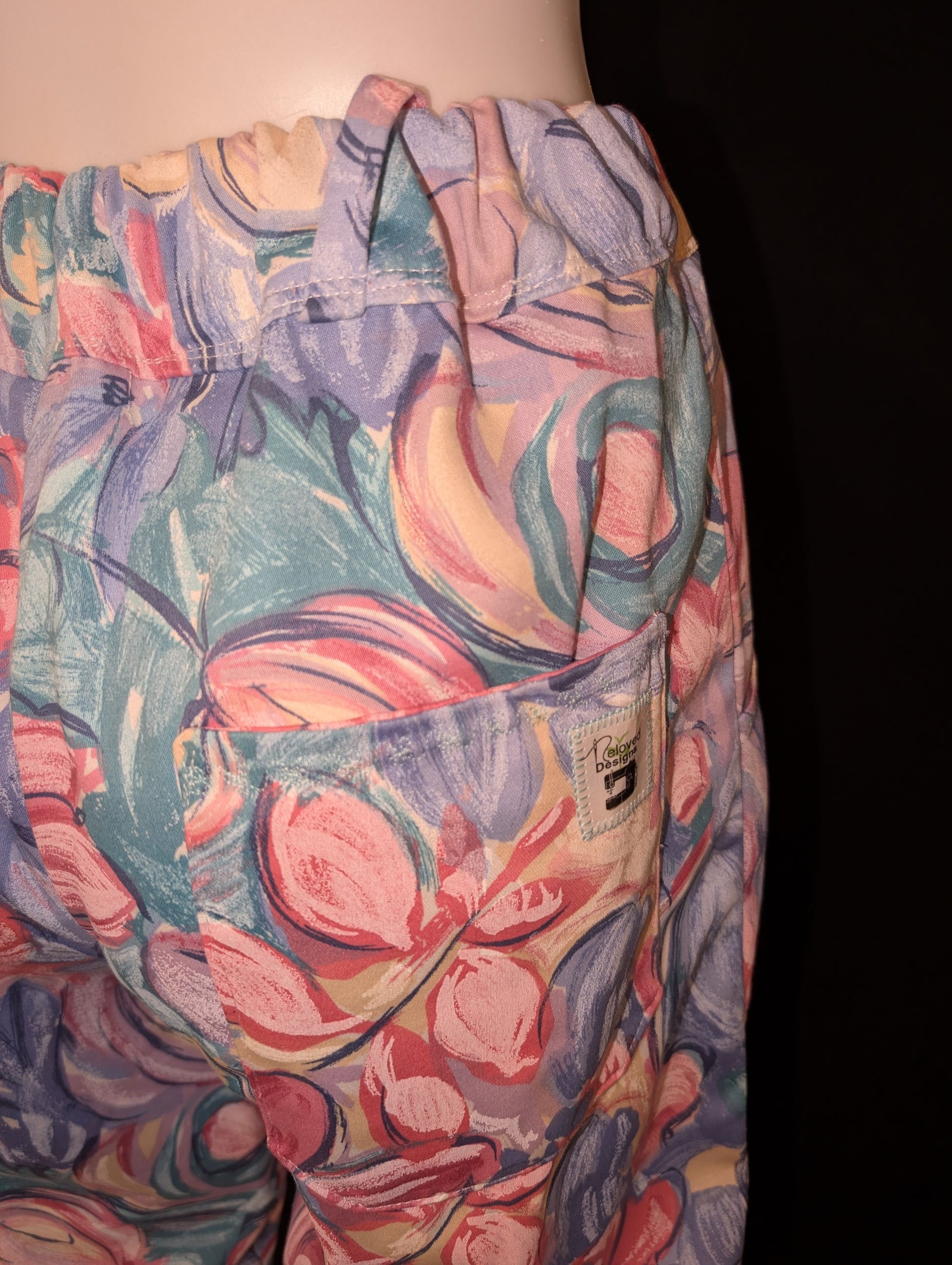 Vintage Vibe: Upcycled - tulips Pattern Trousers, Size 12 - Eco-Friendly Fashion